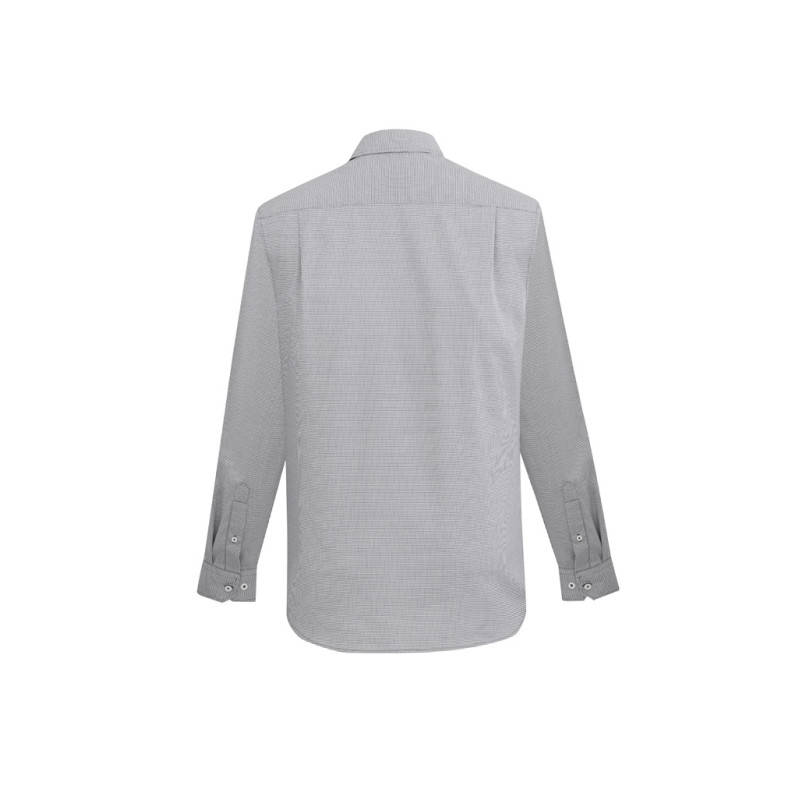 Trend driven button-down collar and pocket,Functional twin back pleats and adjustable cuff,Curved hem can be worn in or out. Fabric: Easy Care 65% Polyester, 35% Cotton,Yarn dyed, Prince Of Wales check fabric,UPF rating - Very Good.