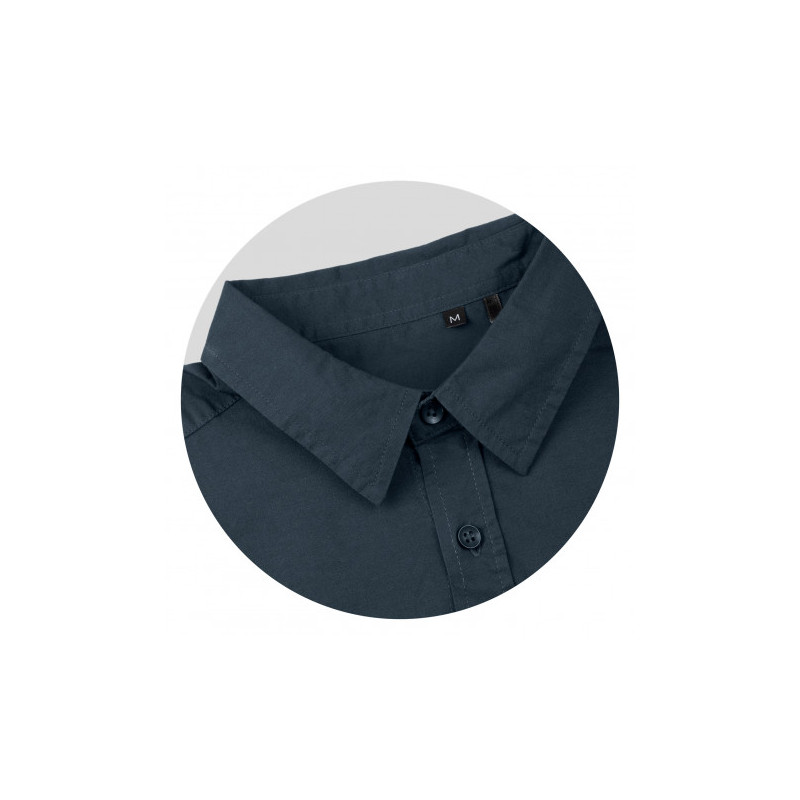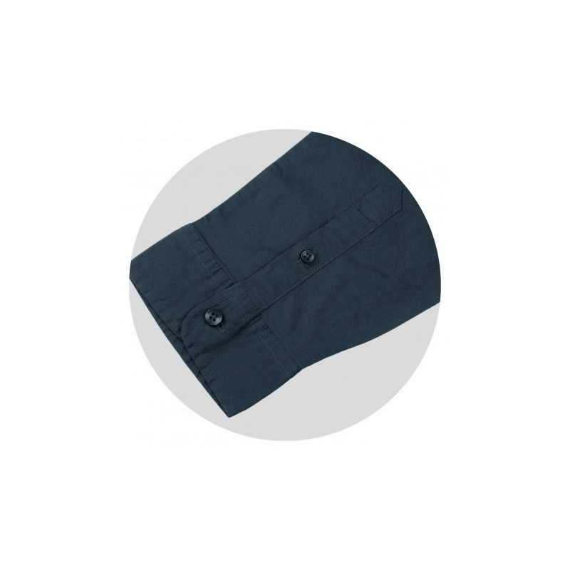 Twin chest pockets with stylish stitching and button detail,Twin back shoulder pleats,Roll-up sleeve function with button and inside tab,Curved hem - can be worn in or out. Fabric: 65% Polyester, 35% Cotton Poplin,UPF rating - Excellent.