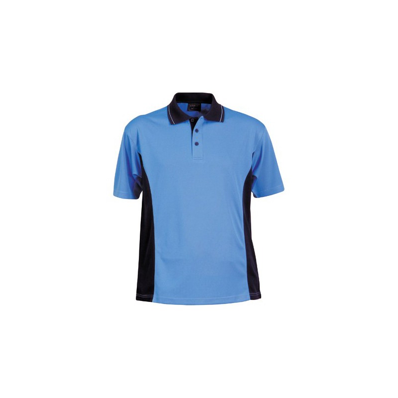 Honeycomb weave with stretch elastane delivers style and comfort,Flat knitted collar with contrast button placket,Side panels with dynamic contrast piping,Unique print features on torso, sleeve and back neck to accent your logo,Longer length for added coverage when moving,Mens style includes loose pocket. Fabric: 97% Polyester, 3% Elastane,180 GSM,BIZ...