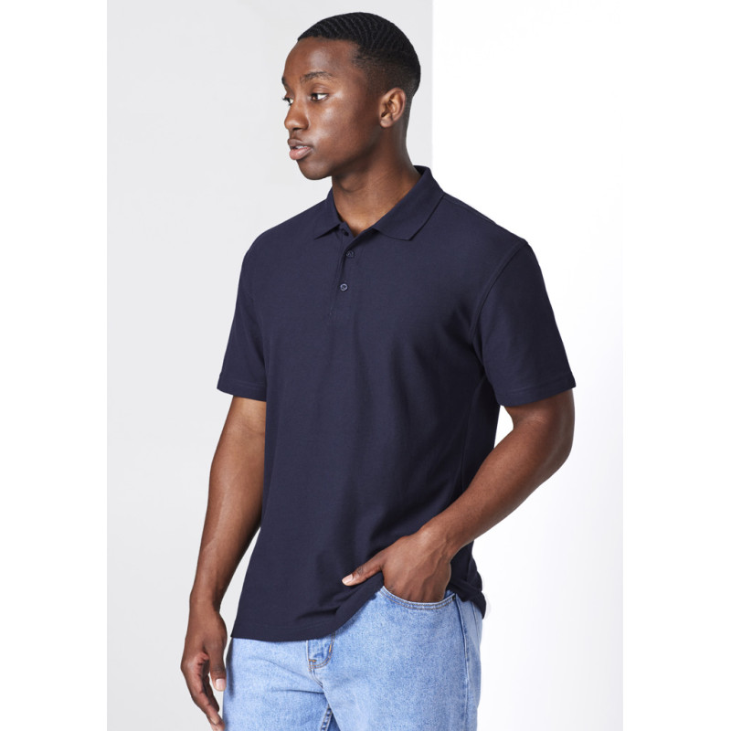 Contrast hem panel detail,New slim knitted stripe collar and cuff,Loose pocket included. Fabric: 50% Cotton inner, 50% BIZ COOL Polyester Pique Outer,170 GSM,UPF rating - Good.