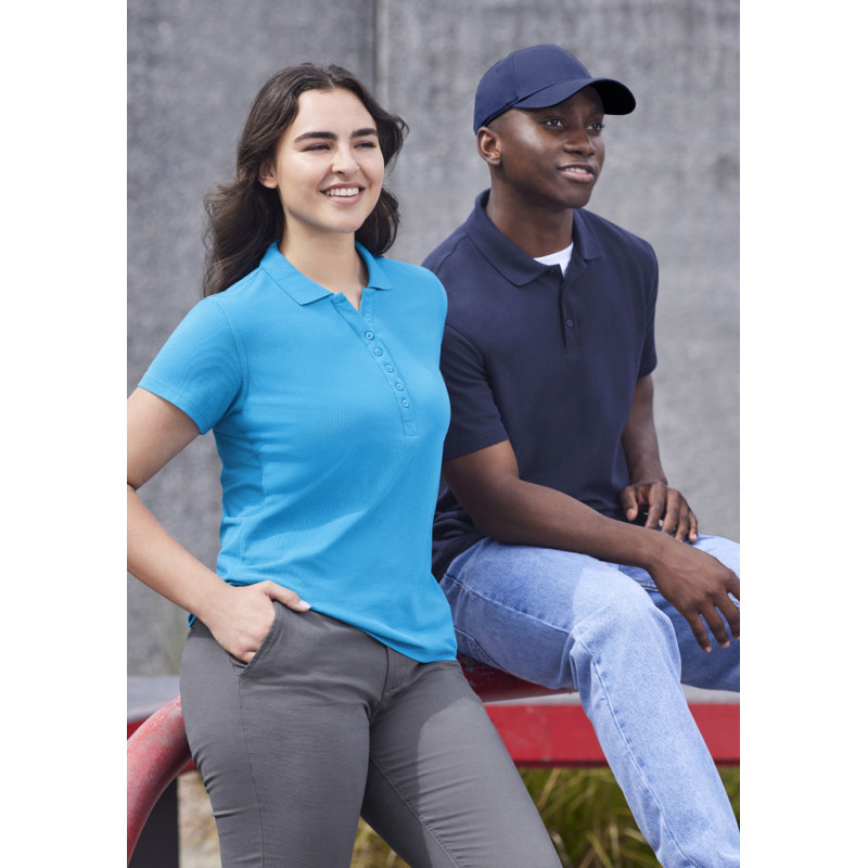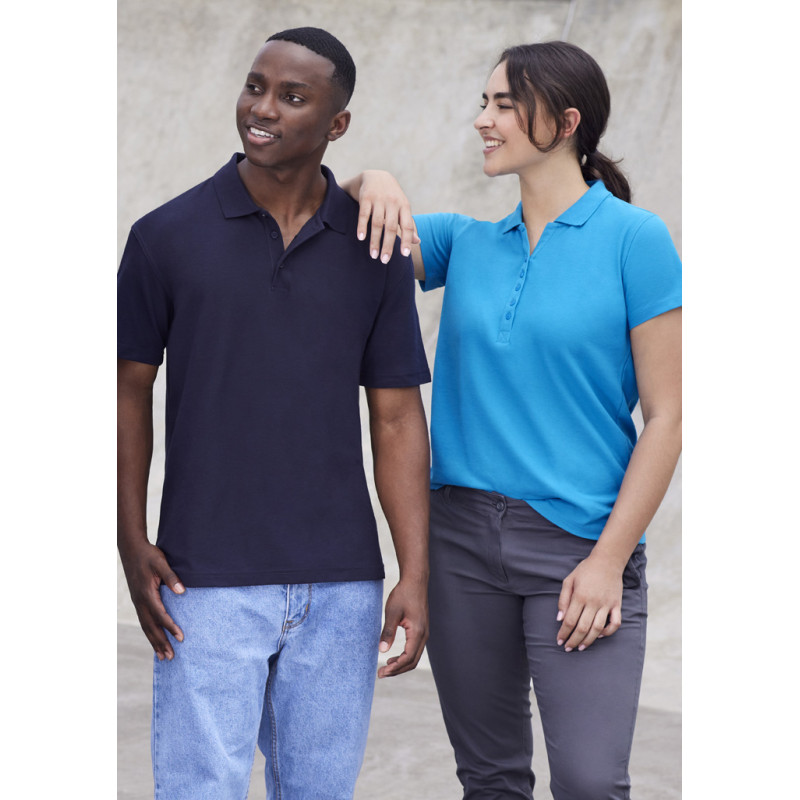 No-fuss anti-shrink, anti-fade fabric has a cotton-like feel that keeps you cool and dry,Heathered marle pattern adds a subtle point of difference,Flat-locked shoulder seams for mobile comfort,Neatly designed self-fabric collar & placket,Mens style includes loose pocket. Fabric: 100% BIZ COOL Cotton-feel Micro Polyester,160 GSM,UPF 15+.