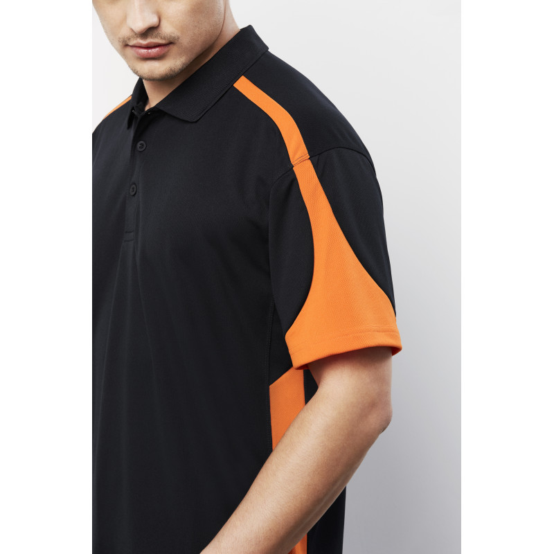 Bold contrast panel design,Self fabric collar and contrast sleeve cuff,Ladies style features Y-line placket,Mens style includes loose pocket. Fabric: 100% BIZ COOL Polyester Micro Interlock,145 GSM,UPF 50+.