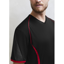 Grid mesh underarm panels for breathability,Unique sleeve print feature,Contrast panels and piping,Self-fabric V-Neck binding. Fabric: 100% BIZ COOL Polyester Sports Interlock,155 GSM,UPF rating - Excellent.