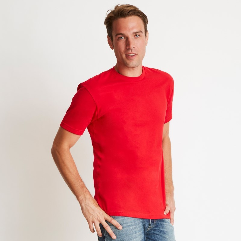 Soft combed cotton T-shirt for men with a very light feel and a fashionable rolled collar. The fine structure gives these T-shirts a premium look and high elasticity. Fabric: 100% ring-spun combed cotton; single jersey|Weight: 105 g/m²|Fit: Normal Fit|Sizes: S-XL|Care Instructions: washable at 40°C|Other Features: rolled self-fabric collar, neck tape,...