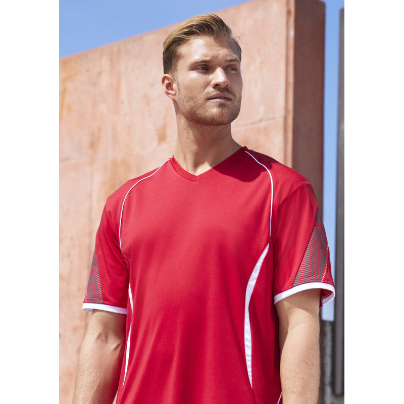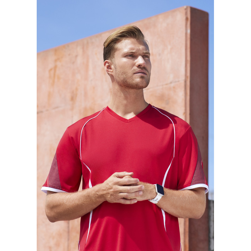 Modern and stretchy sports T-shirt for men, with contrast raglan seams made of quick-drying, breathable mesh-material. Contrast neck tape, decorative flatlock seams and excellent freedom of movement. Fabric: 100% ACTIVE-DRY polyester; sleek mesh|Weight: 140 g/m²|Fit: Normal Fit|Sizes: S-2XL|Other Features: sleek surface, stretchy fabric, contrast raglan...