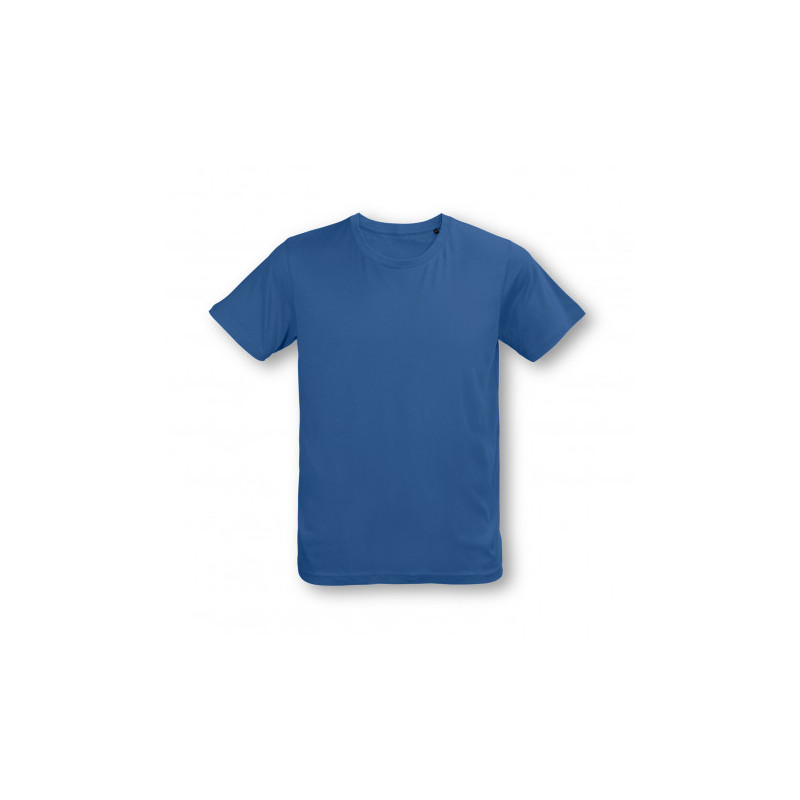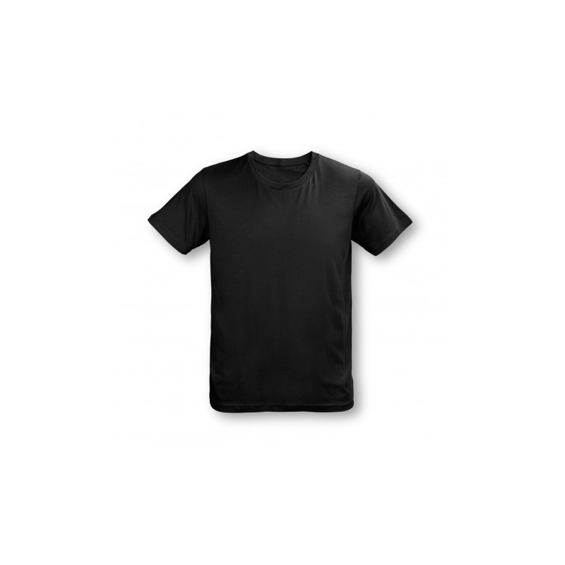 Classic cut T-shirt for men features collar with rib binding and made of durable single jersey cotton. Fabric: 100% ring-spun cotton; single jersey|(GYH: 85% cotton, 15% viscose)|Weight: 160 g/m²|Fit: Normal Fit|Sizes: S-2XL|Care Instructions: washable at 40°C|Other Features: collar with rib binding, side seams, small size label in the collar, care label...