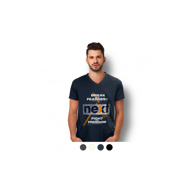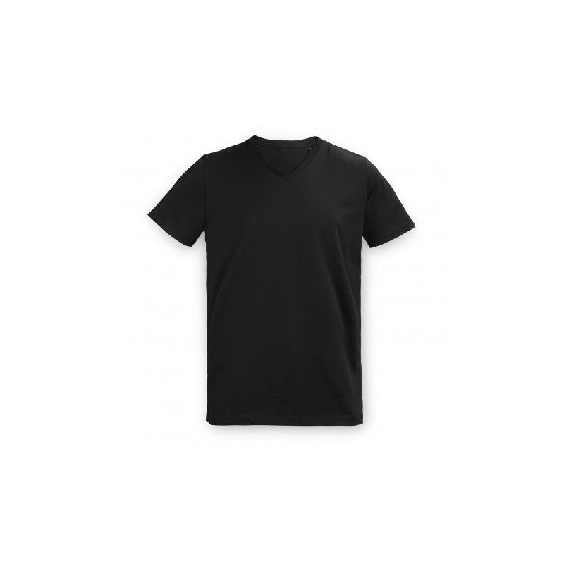 Classic V-neck style for men. Soft, without side seams and made of durable single jersey cotton. Fabric: |100% ring-spun cotton; single jersey |(GYH: 85% cotton, 15% viscose)|Weight: |155 g/m²|Fit: Normal Fit|Sizes: S-2XL|Care Instructions: W|ashable at 40°C|Other features: |taped shoulder to shoulder, tubular fabric, size and care label in the collar