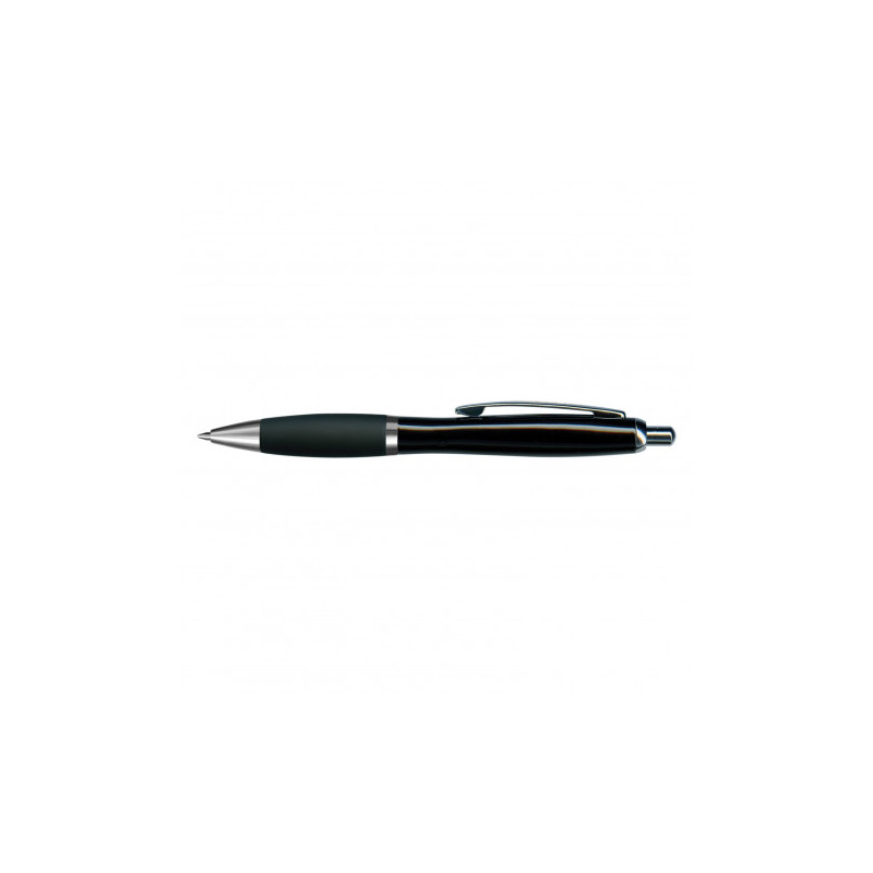 Push button ballpoint pen with black ink and black stylus. Aluminium soft feel barrel. Chrome clip and tip & highlight rings on the barrel. Writing distance: 2.1 kilometres.
