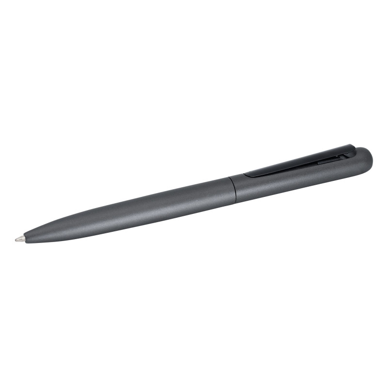 Aluminium barrel ballpoint pen with silver accents. Writing distance: 2.1 kilometres.