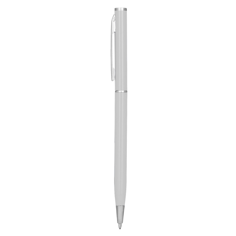 Metallic aluminium barrel ballpoint pen with silver accents. Writing distance: 2.1 kilometres.