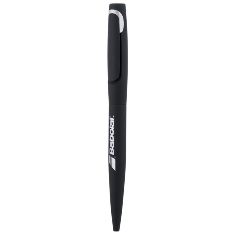 Push button ballpoint pen with black ink and black stylus. Aluminium soft feel barrel. Chrome clip and tip & highlight rings on the barrel. Writing distance: 2.1 kilometres.