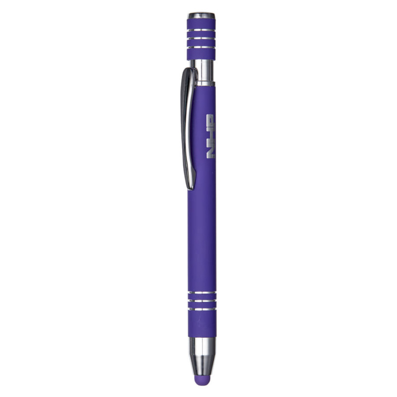 Push button ballpoint pen with black ink and black stylus. Aluminium soft feel barrel. Chrome clip and tip & highlight rings on the barrel. Writing distance: 2.1 kilometres.