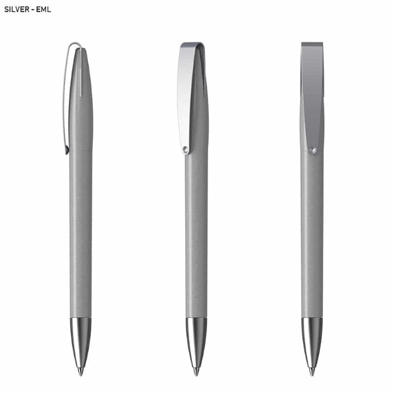 Matte finish aluminium barrel ballpoint pen with Silver accents. Writing distance: 2.1 kilometres.