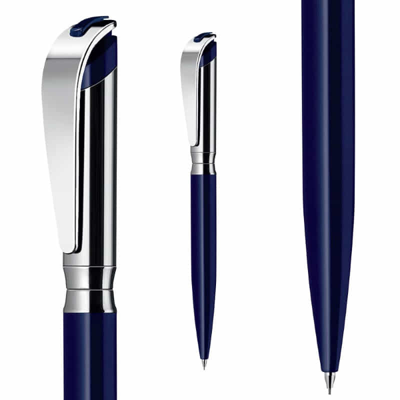 Retractable aluminium ball pen with a matte lacquered barrel and shiny chrome accents. It has 800m of blue German manufactured Dokumental ink and can be presented in an optional pen sleeve or gift box.