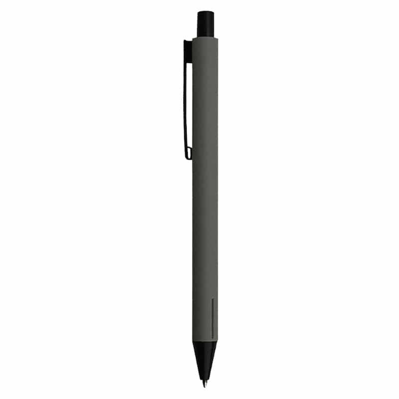 Soft feel, aluminium coloured barrel ballpoint pen with Black accents. This pen can be laser engraved in a silver mirror finish. Optional black suede velvet pouch.Writing distance: 2.1 kilometres. TC roller ball. Nero pigment ink. Aluminium with rubber oil coating