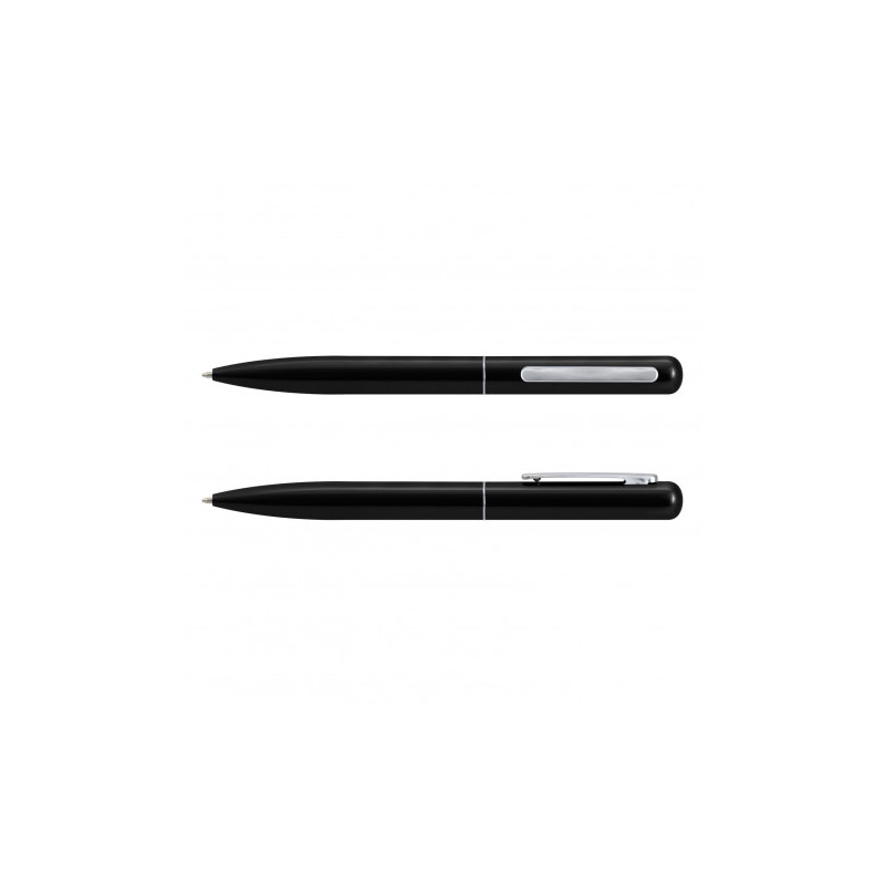 Push button ballpoint pen with black ink and black stylus. Aluminium soft feel barrel. Chrome clip and tip & highlight rings on the barrel. Writing distance: 2.1 kilometres.
