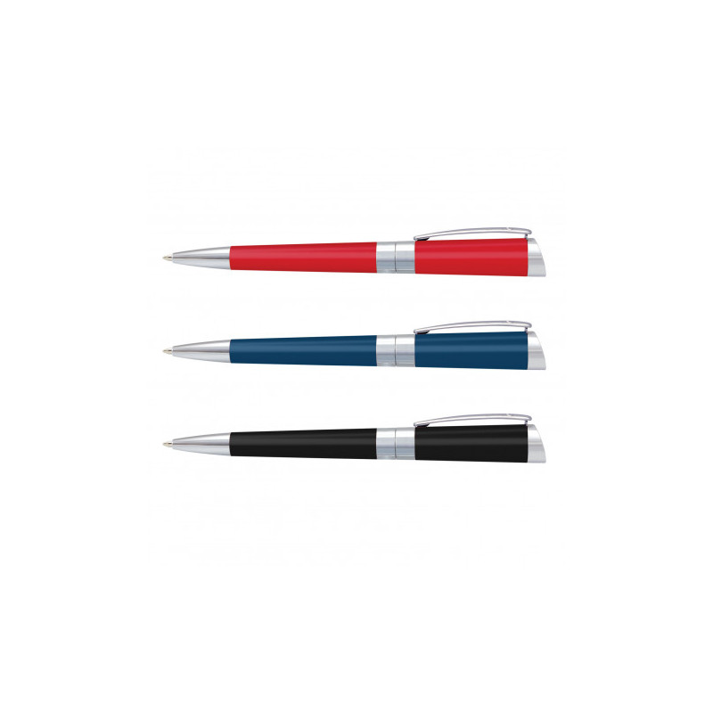 Retractable aluminium ball pen with a matte lacquered barrel and shiny chrome accents. It has 800m of blue German manufactured Dokumental ink and can be presented in an optional pen sleeve or gift box.