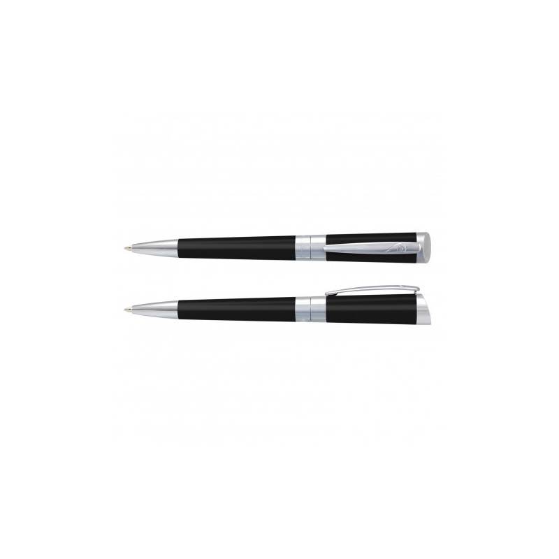 Push button ballpoint pen with black ink and black stylus. Aluminium soft feel barrel. Chrome clip and tip & highlight rings on the barrel. Writing distance: 2.1 kilometres.