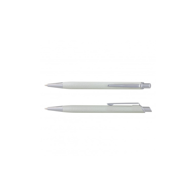 Matte finish aluminium barrel ballpoint pen with Silver accents. Writing distance: 2.1 kilometres.