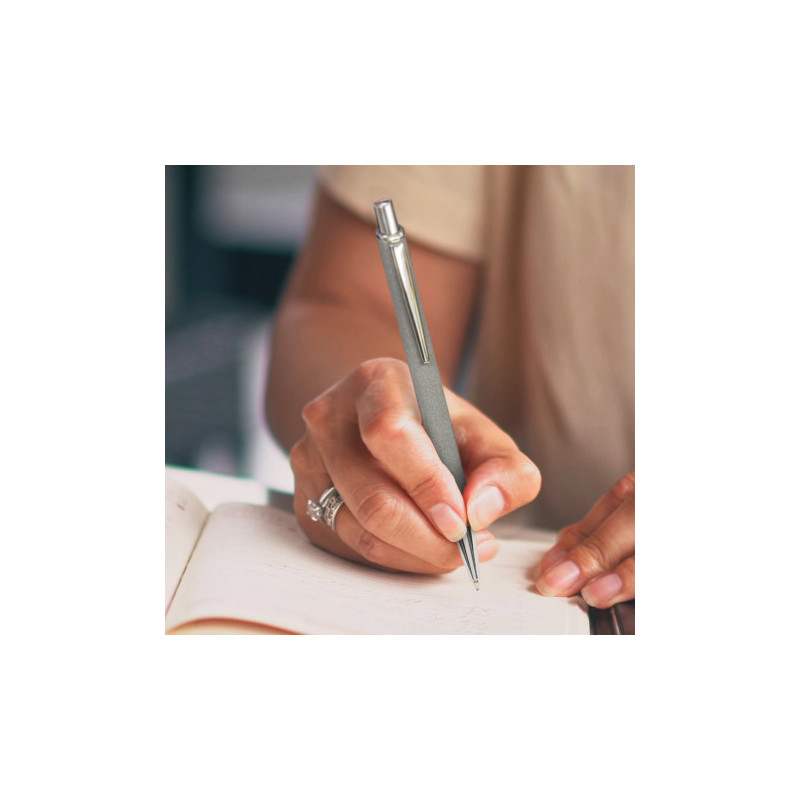 Soft feel, aluminium pen with chrome accents. Deluxe matte finish. Writing distance: 2.1 kilometres.