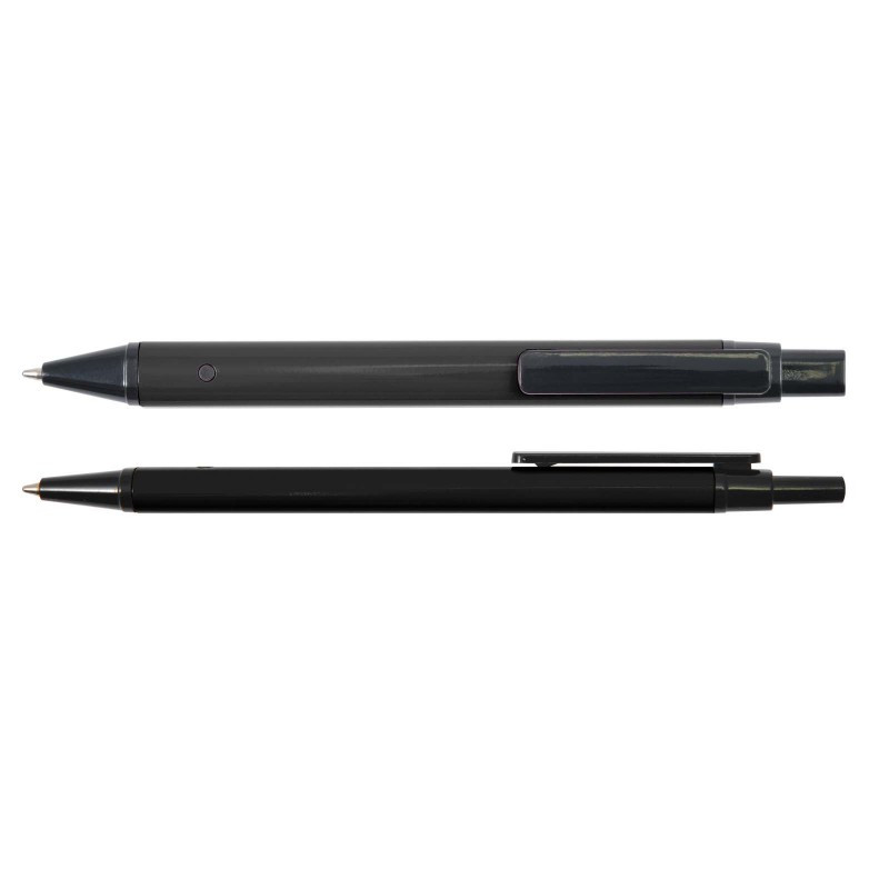 Push button ballpoint pen with black ink and black stylus. Aluminium soft feel barrel. Chrome clip and tip & highlight rings on the barrel. Writing distance: 2.1 kilometres.