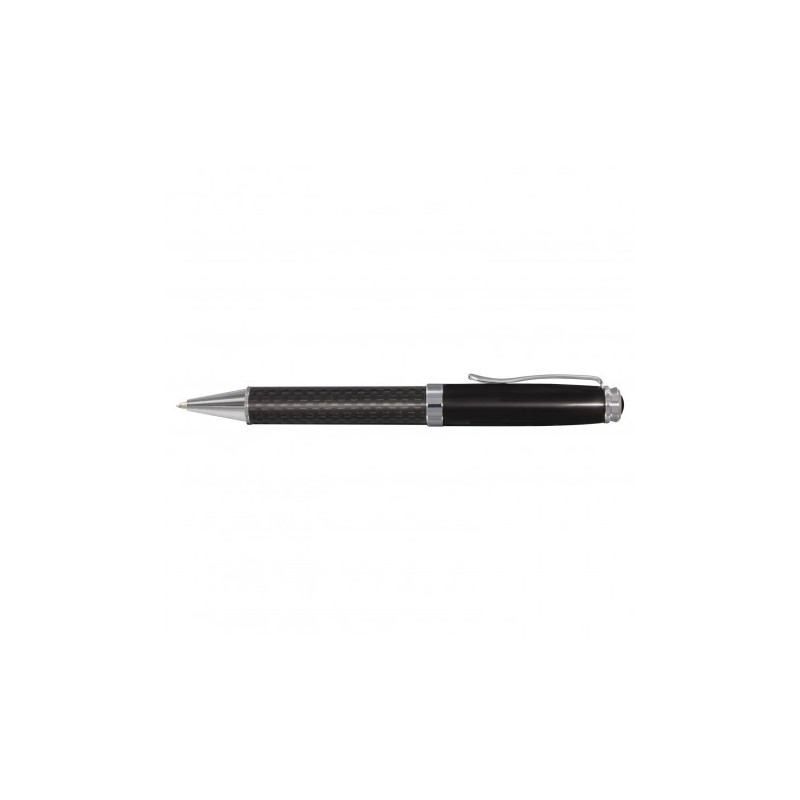 Retractable aluminium ballpoint pen with a unique stone-like textured finish and shiny chrome accents. It has a blue large volume refill with 1800 metres of writing ink and can be presented in an optional pen sleeve or a gift box.