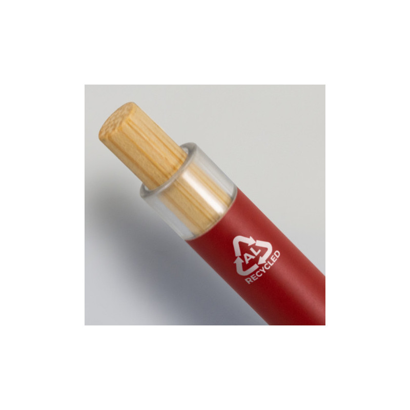 Retractable ballpoint pen with a recycled aluminium barrel featuring a matte lacquered finish and shiny chrome trim. It has a black refill with 1200 metres of German manufactured Dokumental ink. A recycled symbol is engraved on the barrel.