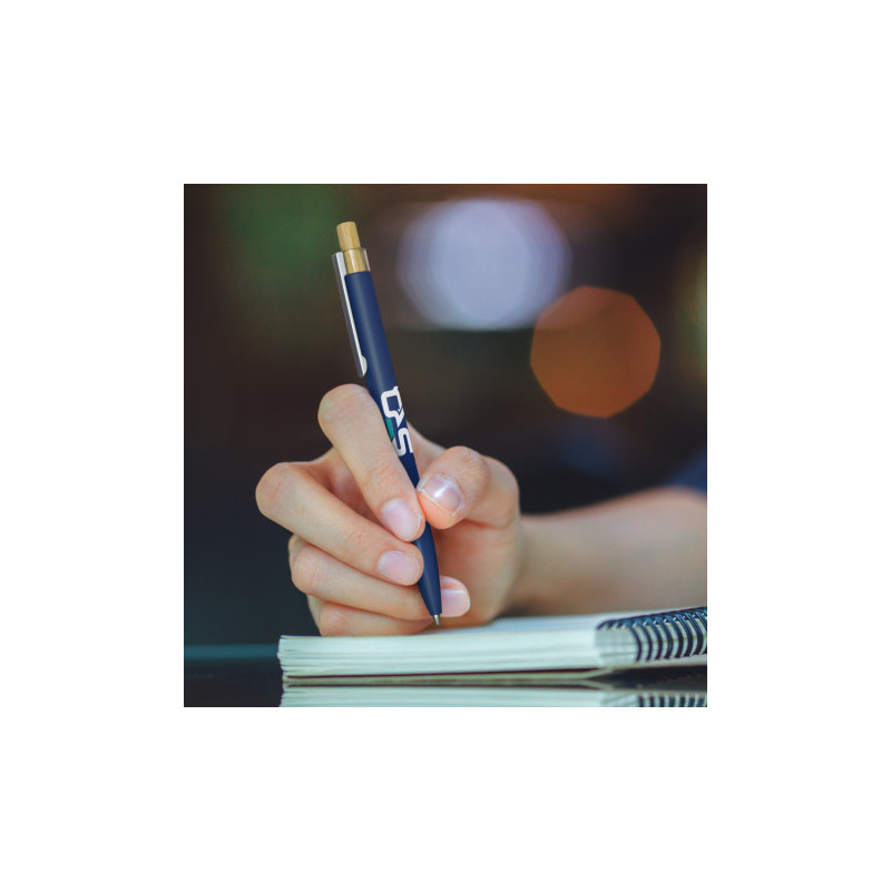 Flat barrel aluminium pen with soft feel coating. Push button action. Writing distance: 2.1 kilometres. TC roller ball. Nero pigment ink. Aluminium