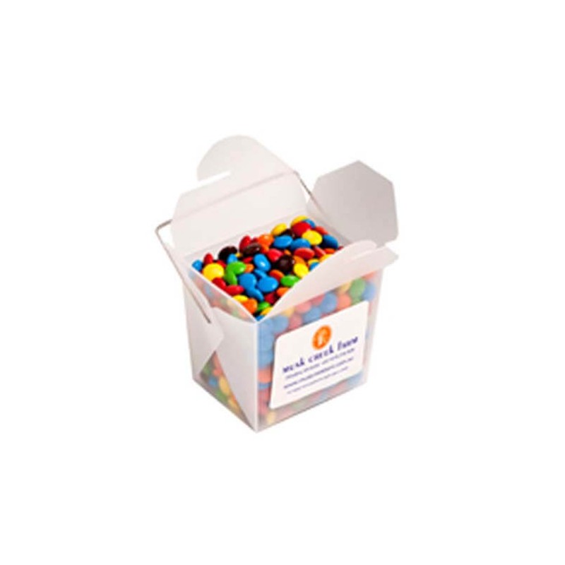 White Cardboard Noodle Boxes Filled With Mini M&Ms 100G