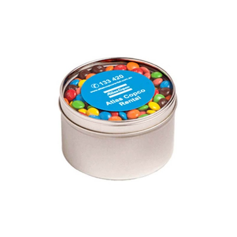 Minimum Order Quantities for 2x50gm Bags M&Ms Packed in Small Round Window Tins