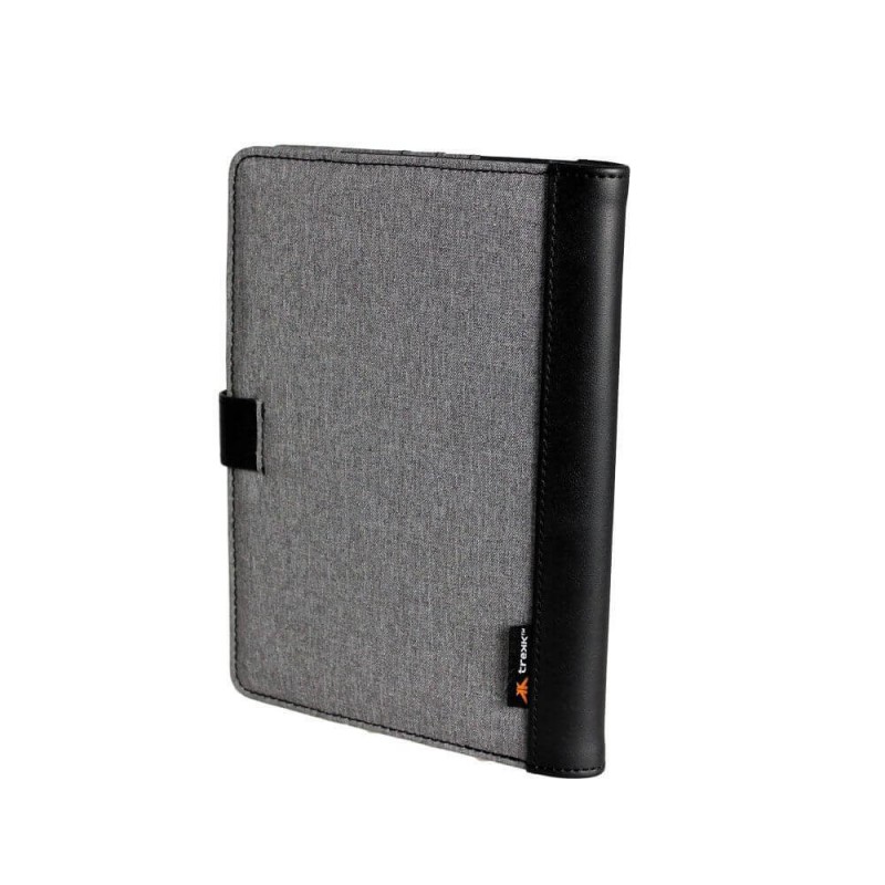 Zippered closure. Tech Trap elastic interior organizer. Holds an iPad. Front cover access pocket with business card holders and media organizers. (Pens, iPad and other devices shown are not included)