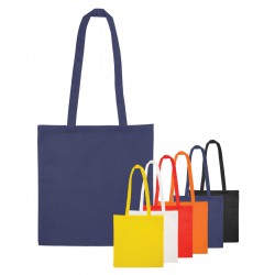 Standard reusable non woven bag without gusset and has long shoulder handles. Made of 90gsm new polypropylene material, it is more durable and stronger. Comes in large colour selection for most of corporate colours.