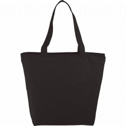 The Zippered Rope Handle 12oz Cotton Canvas Tote has a zippered main compartment with a color accent on the bottom band. The 22 inch soft rope handles also make it easy to carry.