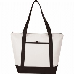 Insulated with heat-sealed water-resistant lining. Zippered main compartment with double 24 inch handles. Open front pocket with pen loop.