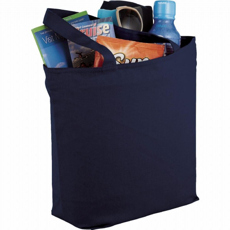 The Essential 8oz Cotton Grocery Tote features an open main compartment and durable 8oz cotton fabric along with thick webbing handles. This tote can help you reduce your environmental impact by eliminating hundreds of plastic bags over the life of this tote.