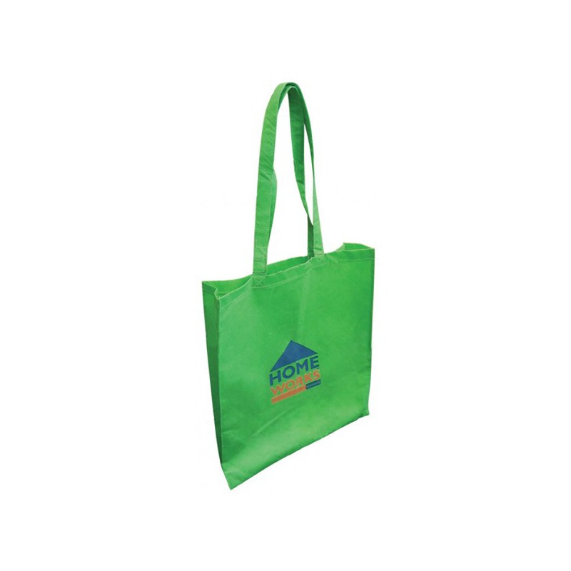 Standard reusable non woven bag without gusset and has long shoulder handles. Made of 90gsm new polypropylene material, it is more durable and stronger. Comes in large colour selection for most of corporate colours.