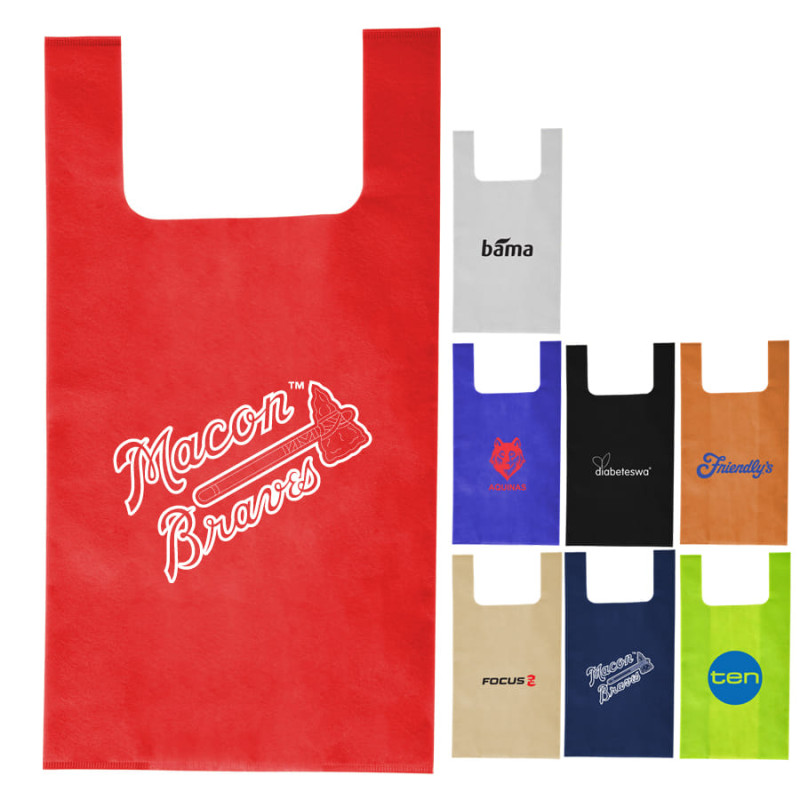 The Hercules Non-Woven Grocery Tote has a large open main compartment with double 18.5 inch reinforced?handles - for Olympian like strength - and a supportive bottom board. Its also completely reusable and a great alternative to plastic bags.