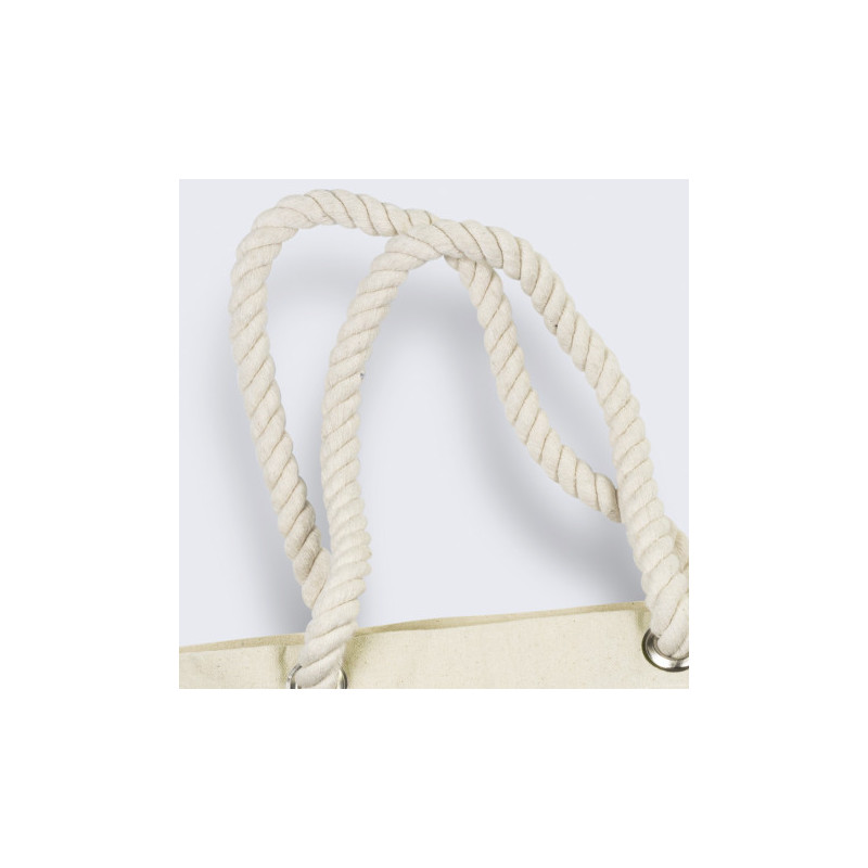 The Zippered Rope Handle 12oz Cotton Canvas Tote has a zippered main compartment with a color accent on the bottom band. The 22 inch soft rope handles also make it easy to carry.