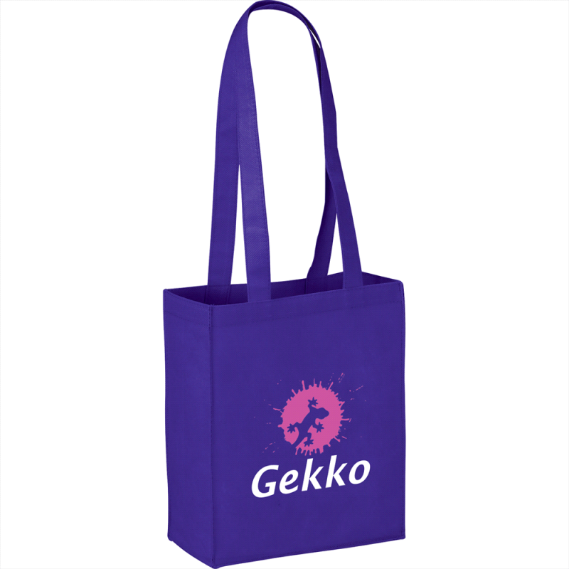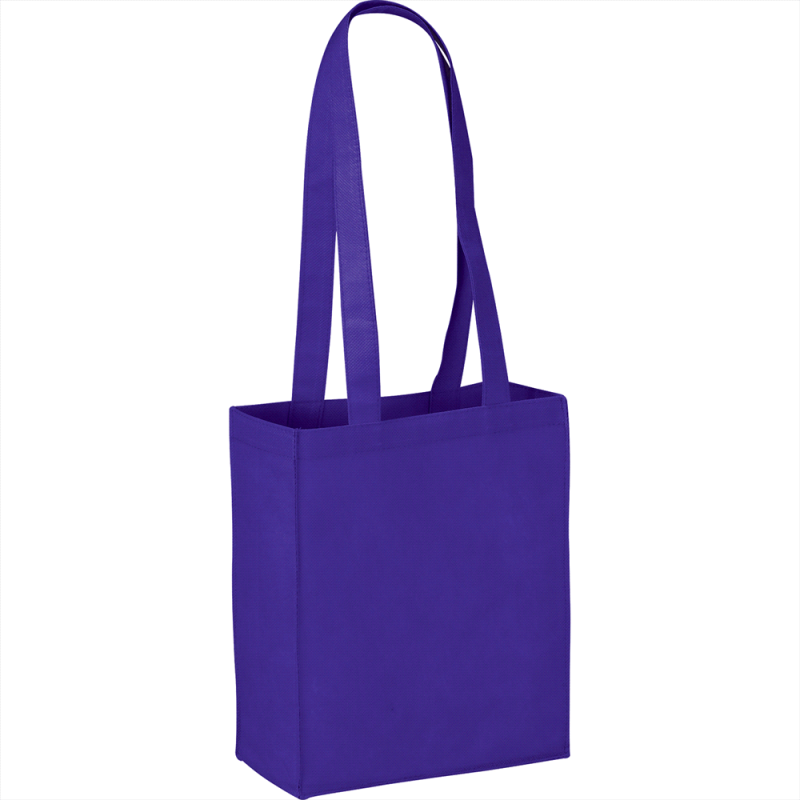 Standard size non woven shopping bag with long shoulder handles and gusset. It is made of 90gsm new polypropylene material, which is more durable and stronger. With a range of colours available for your corporate colour selection.
