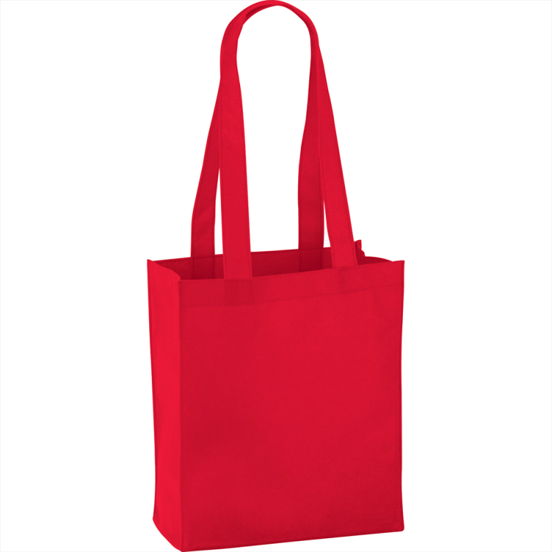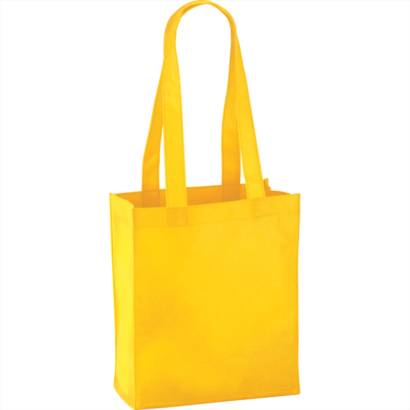 Standard reusable non woven bag without gusset and has long shoulder handles. Made of 90gsm new polypropylene material, it is more durable and stronger. Comes in large colour selection for most of corporate colours.