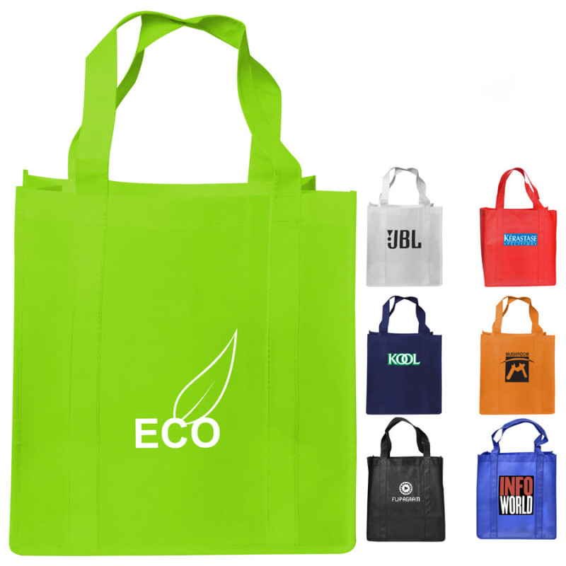 The Hercules Non-Woven Grocery Tote has a large open main compartment with double 18.5 inch reinforced?handles - for Olympian like strength - and a supportive bottom board. Its also completely reusable and a great alternative to plastic bags.