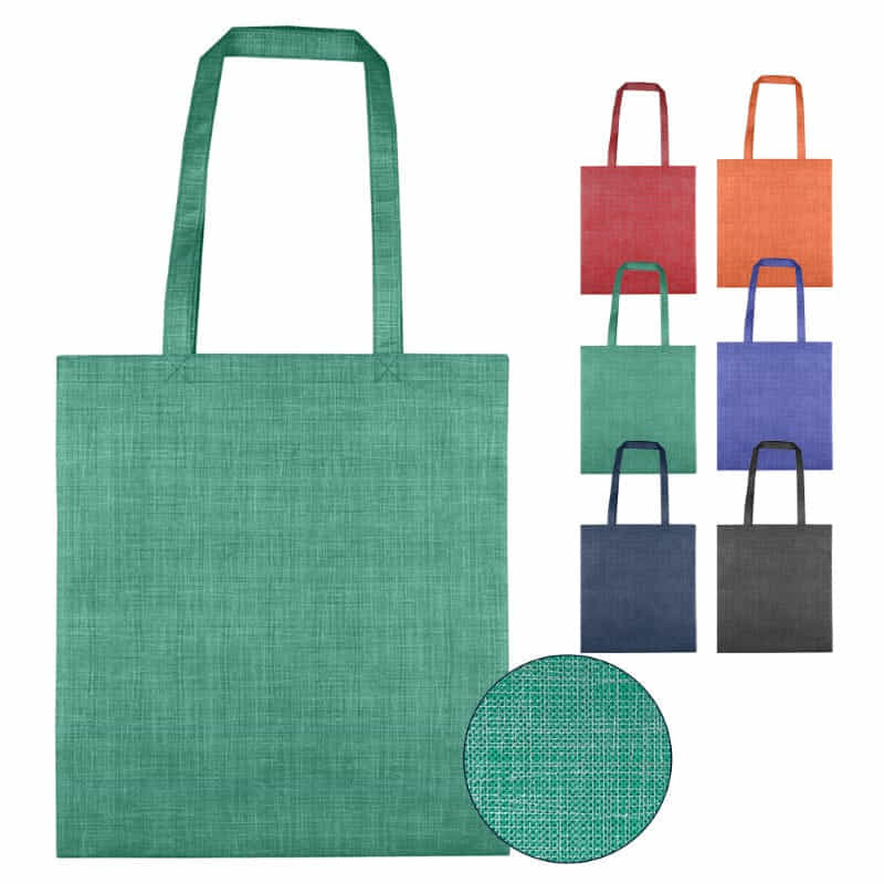 Standard reusable non woven bag without gusset and has long shoulder handles. Made of 90gsm new polypropylene material, it is more durable and stronger. Comes in large colour selection for most of corporate colours.