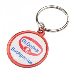 Robust clear plastic key ring which is branded on both sides in full colour at no extra cost. The branding is inside the case so the print will never wear off.