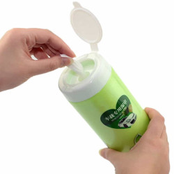 Car bucket wet tissues in a plastic cylinder container, contains 32 piece 45g anti bacteria wet non woven fabric tissues, a great promotional product for car industry and personal use. Large full colour digital printing label displays huge amount of information.