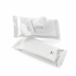 10 anti bacteria non woven wet tissues in a plastic pouch with a resealable clear sticker, a handy promotional item for car, office and travel.