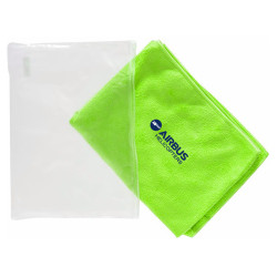 Microfibre sports towel in PVC zip lock pouch. Supplied in plastic pouch.