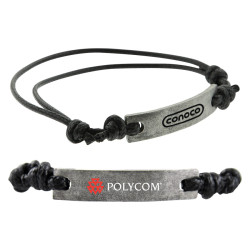Laser engrave your company logo, motto, name or a personal health concern on our friendship bracelets. The silver name plate is simple yet rugged and ties onto an adjustable cord stip to fit most wrist sizes.