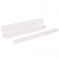 A glass nail file used for filing nails, making them smooth and healthy looking. Comes in a vinyl case.