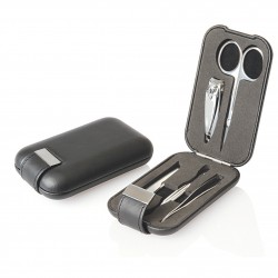 Make sure you always look your best. This set includes a mirror, tweezers, a nail clipper, a toe nail clipper, a pair of scissors, a nail file and a cuticle tool. The set comes in a handy non-woven zippered nylon pouch. Stainless steel.