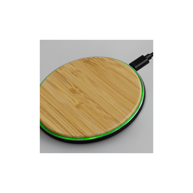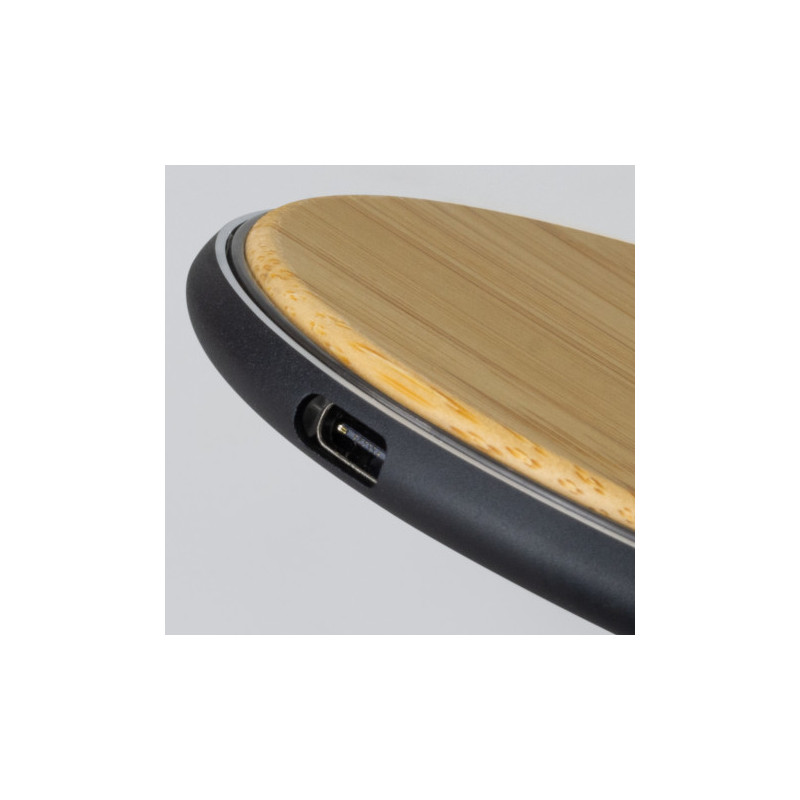 Inductive wireless charge pad compatible with phones that offer wireless charging. Made from Bamboo. Connect charging pad to power using micro USB cable provided then place your phone on the charging pad to charge. Instructions included. Includes inductive charging indicator. Eco Credentials: Renewable, sustainable, printed using renewable energy.